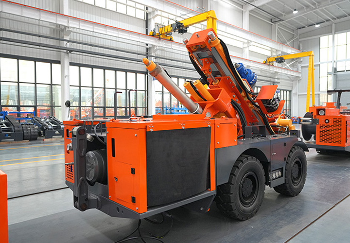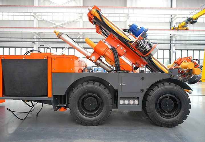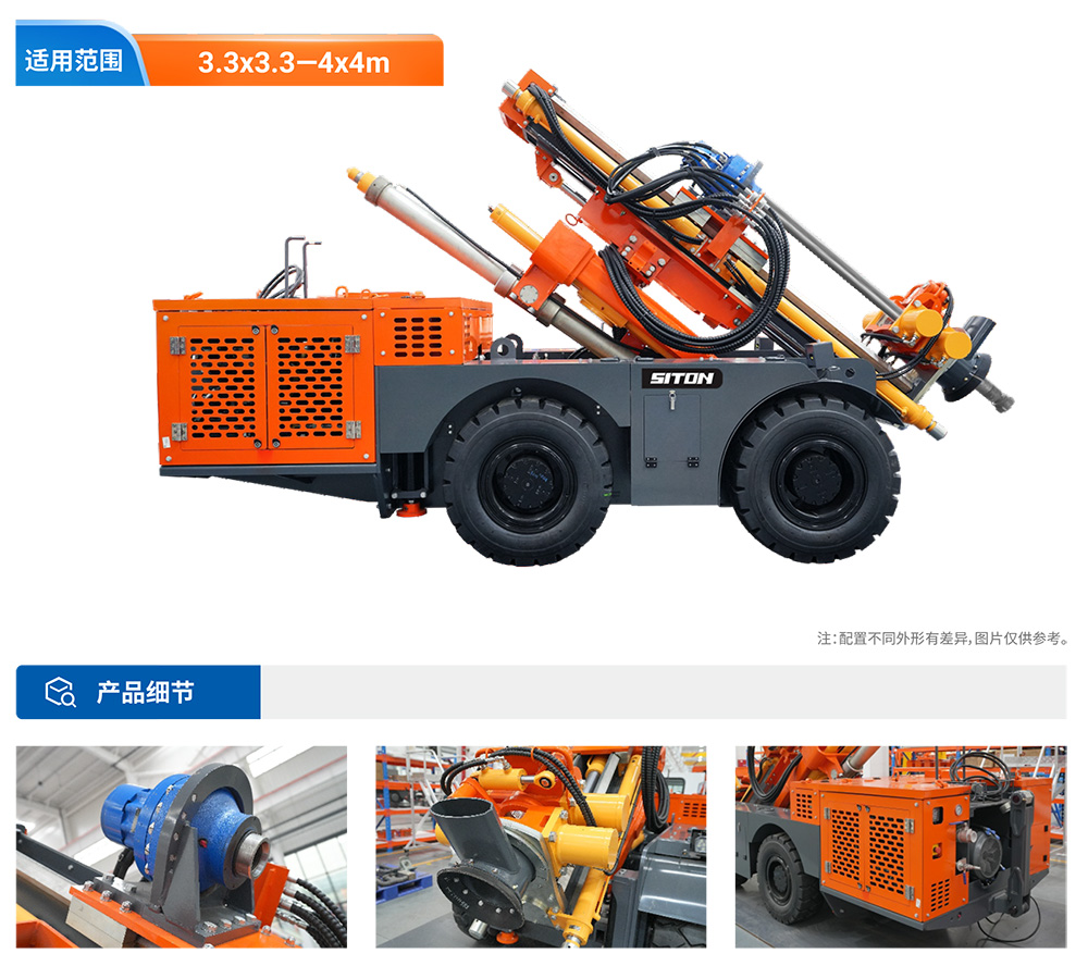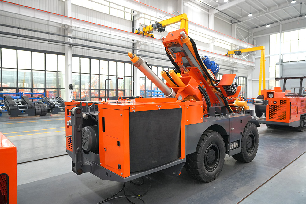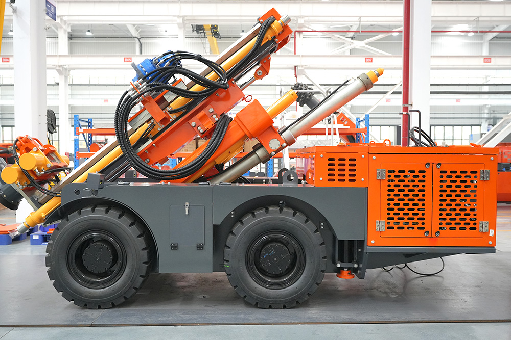 KODT-125是一款輪胎式礦用潛孔鉆機(jī),電壓等級:380V,采用潛孔沖擊器作業(yè),閉式四驅(qū)液壓系統(tǒng),適用于3.3-4m地下采場環(huán)形孔的穿鑿,是專用的穿孔設(shè)備,也可用于天井和斜井的開鑿及回采作業(yè)。主要功能和裝置如下:適用于鉆孔直徑范圍120-254mm,鉆孔深度0-100m;鉆架可環(huán)向360°旋轉(zhuǎn),前后-10°-55°度擺動,適用于環(huán)向打孔;鉆臂裝載有液壓穩(wěn)桿機(jī)構(gòu),保證鉆孔直度,偏斜率≤1%;機(jī)身配有頂升支腿和后擺動橋,可在路面坑洼惡劣條件下工作;設(shè)備四驅(qū)驅(qū)動,可實(shí)現(xiàn)360°轉(zhuǎn)彎,原地掉頭;長距離移動時,設(shè)備可解鎖制動,且配備牽引,方便使用拖車進(jìn)行快速移動;鉆機(jī)回轉(zhuǎn)具有無級調(diào)速功能,可根據(jù)不同巖層狀況調(diào)整鉆速,提高效率;且設(shè)備配置遙控裝置,方便操作人員操作設(shè)備的同時,提高了操作安全性和可靠性;設(shè)備配備了沖洗裝置,方便操作人員清理設(shè)備,維持設(shè)備整潔,提高設(shè)備使用壽命。